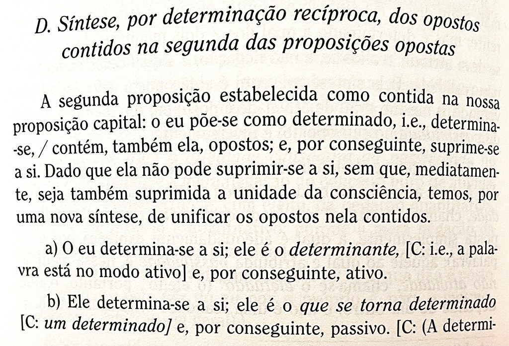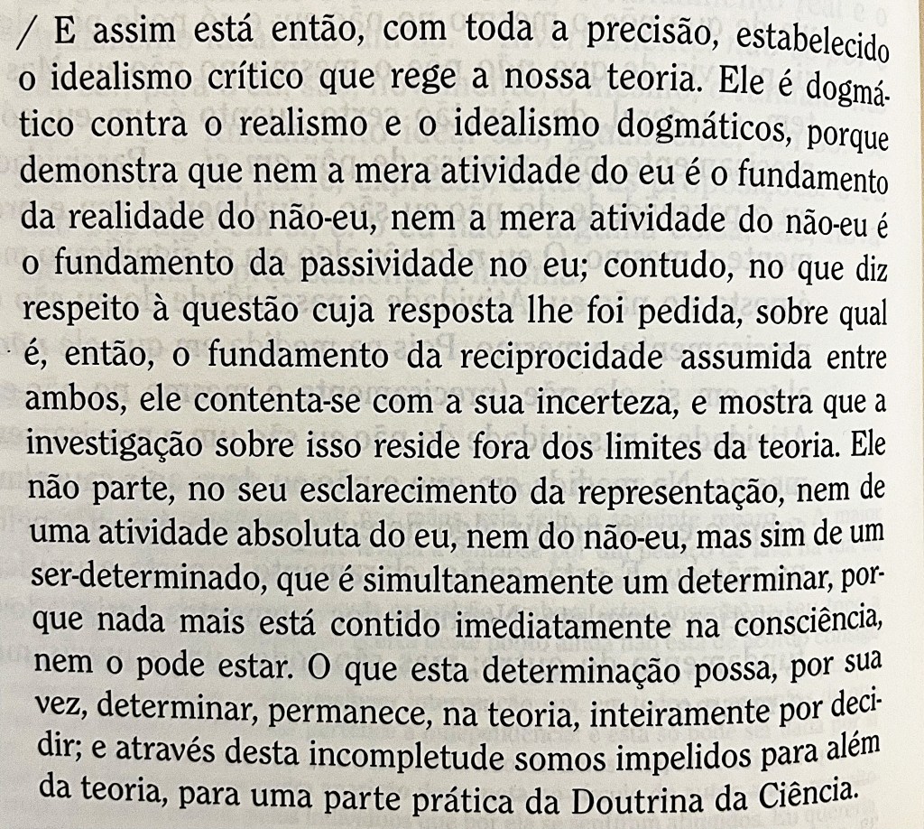 Precisamos entender isso em partes e com cuidado. Primeiro, a respeito da diferença entre o conhecimento sensível e o racional, o que produz a diferença destacada por Hegel é o poder de domínio da razão abstrativa que gera o entendimento. Em face da intuição do Ser através da Percepção, o produto secundário da razão como reflexão do intuído está muito mais ao dispor da nossa Vontade, o que sempre nos traz um tipo de conforto, especialmente para as pessoas com um temperamento mais obcecado com controle e domínio. Isto não quer dizer que a verdade pertence a nós, ou que a realidade intuída na Percepção seja menos verdadeira. Ao contrário, como Hegel assume, a realidade é sempre mais rica do que os produtos da depuração abstrativa. Agora, ela está fora do nosso controle. E isso pode incomodar quem deseja, acima do conhecimento intuitivo, sensível, da bondade, da verdade e da beleza do Ser, o seu domínio. Esse incômodo é fruto do orgulho, então é um problema moral e espiritual, não epistemológico. Uma maneira típica de inversão da prioridade do Ser sobre a Razão humana é a consideração de que não existe conhecimento sensível do tipo intuitivo através da Percepção, mas apenas do tipo abstrato através do entendimento. Essa já é uma interpretação orgulhosa do sentido do conhecimento. Segundo, sobre a participação essencial do sujeito na constituição do objeto, de acordo com as categorias mais básicas do Idealismo nós podemos concordar com Hegel, desde que isso signifique reconhecer somente que a realidade concreta, na sua riqueza percebida, seja produzida instintiva e intuitivamente pelo sujeito, mas nunca de modo mediado pela Razão abstrativa. De outro modo, a criatividade subjetiva seria a criação de uma imagem da verdade, de uma imitação, de uma falsificação da verdade, agradável por ser manipulável, mas falsa justamente por não ser perceptível pelas nossas sensações. Esta seria a diferença entre uma mônada criada movida por Deus na sua Percepção, ou seja, iluminada pelo ato da Mônada Incriada, e uma mônada criada que descobrisse possuir luz própria e a capacidade de gerar sua própria “verdade”. O segundo caso, que parece ser o objetivo da intenção de Hegel, seria o cumprimento da promessa da Serpente no Jardim do Éden. É desnecessário dizer o quanto essa doutrina é gnóstica. A filosofia, portanto, tem sempre o potencial de reconhecer o ato criativo de Deus, ou de querer se desligar dessa concepção e gerar um mito de emancipação da Razão humana. Qual seria, então, de acordo com o propósito divino, a função da Razão para o ser humano? Seria o de dar o testemunho da verdade fundada em Deus. É possível, porém, deturpar e corromper essa função para subsidiar racionalmente uma tese de rompimento com o divino. O que opera a escolha é o próprio arbítrio humano fundado na crença de aceitação de que o Mistério divino é amoroso, ou na crença maliciosa de que o Mistério é indiferente, ou mesmo maligno. Hegel e quem mais seja pode filosofar o quanto queira, jamais ultrapassará o fato dessa potência humana de crer na premissa que baseia a sua escolha. Contra o dogmatismo, o criticismo teria sempre a razão de se reconhecer como imune ao perigo da Escolha. Isso é verdade. Mas jamais pode se imunizar contra o perigo de não assumir a Escolha quando esta é inevitável na interpretação das primeiras premissas de qualquer raciocínio, afinal de contas não é impossível que alguma idéia dogmática seja verdadeira entre outras falsas, e que esta verdade só seja alcançável pela crença pura. Por outro lado, quem considerasse essa possibilidade poderia filosofar a respeito da distinção entre as conveniências das crenças diversas, e talvez alcançar, por exemplo, a Teleologia Metaracional do Sumo Bem. Isto tudo está à disposição da mesma Razão humana que Hegel quer usar para se imunizar contra todos os perigos das crenças. Bem dito, na Dialética hegeliana a falseabilidade da verdade provisória toma sempre a forma de algo como uma crença que precisa ser novamente criticada como uma tese deve receber a oposição de uma antítese. Mas a questão do valor da Escolha é a do encontro da verdadeira calma e tranquilidade que ele está sempre mencionando, que não está na descoberta de um Espírito em nós, mas que nos transcende. Em suma: o Espírito no qual podemos repousar não é o nosso próprio, mas o divino. Essa é a diferença do papel da Escolha entre crenças provisórias dentro de um raciocínio e a produzida sobrenaturalmente pela Fé: num caso crer é apenas uma parte de um processo, é a contraparte do descrer; no outro, crer é libertar-se de seu próprio limite que forçou o filósofo a assumir um pensamento crítico em primeiro lugar.