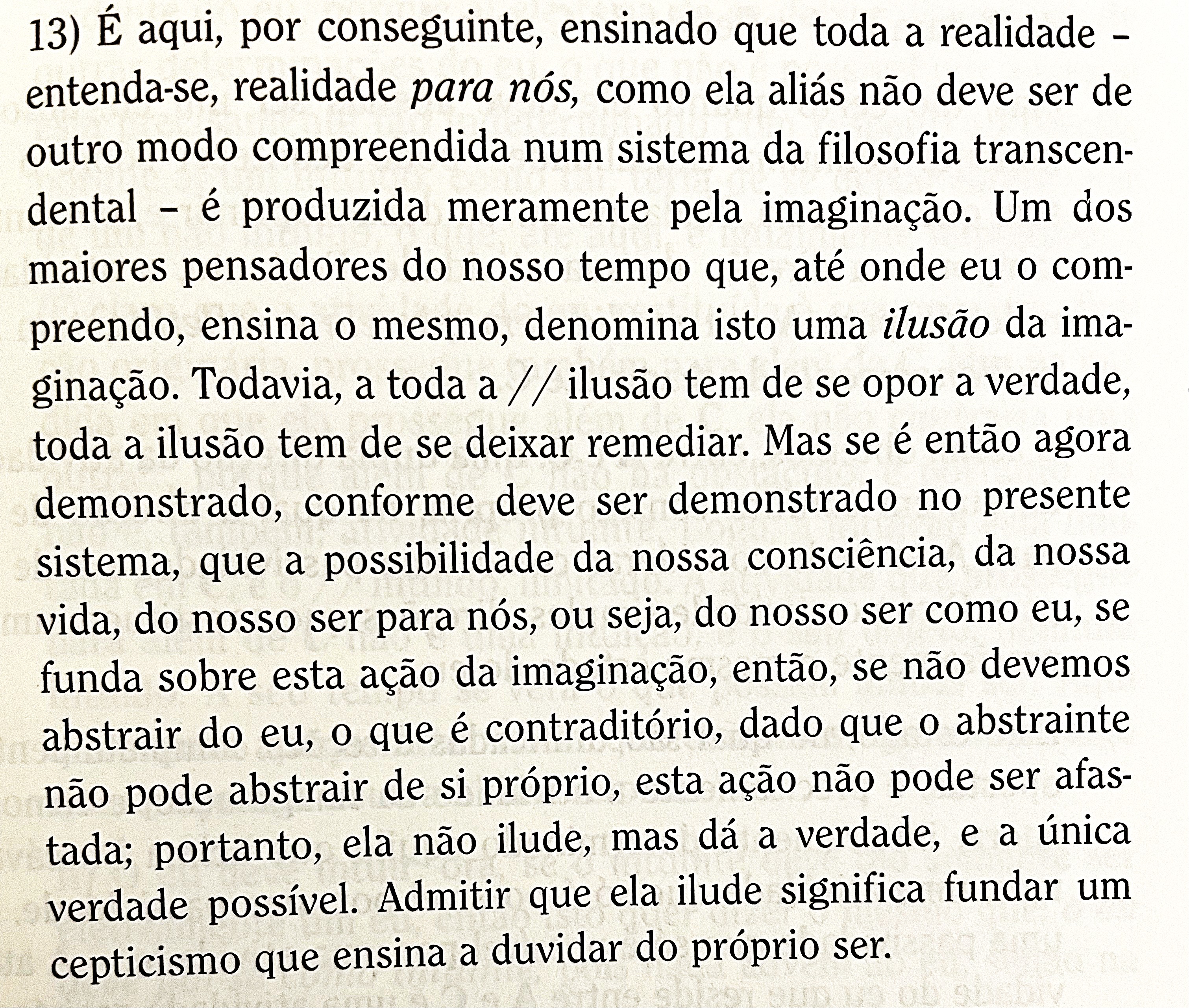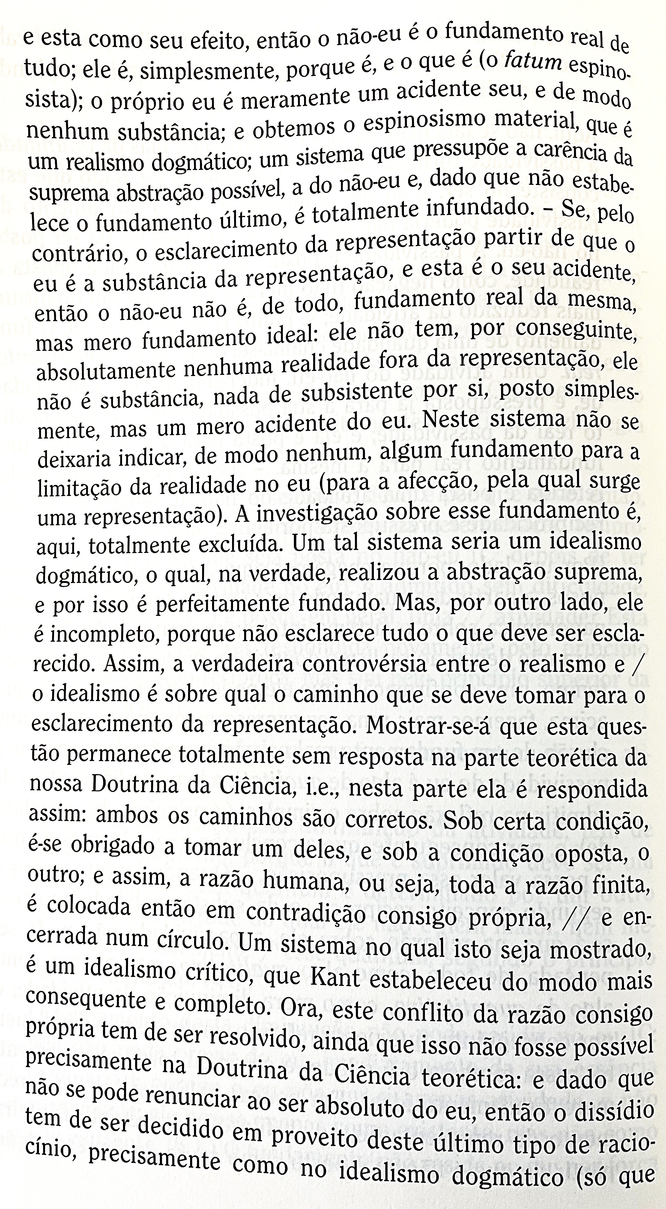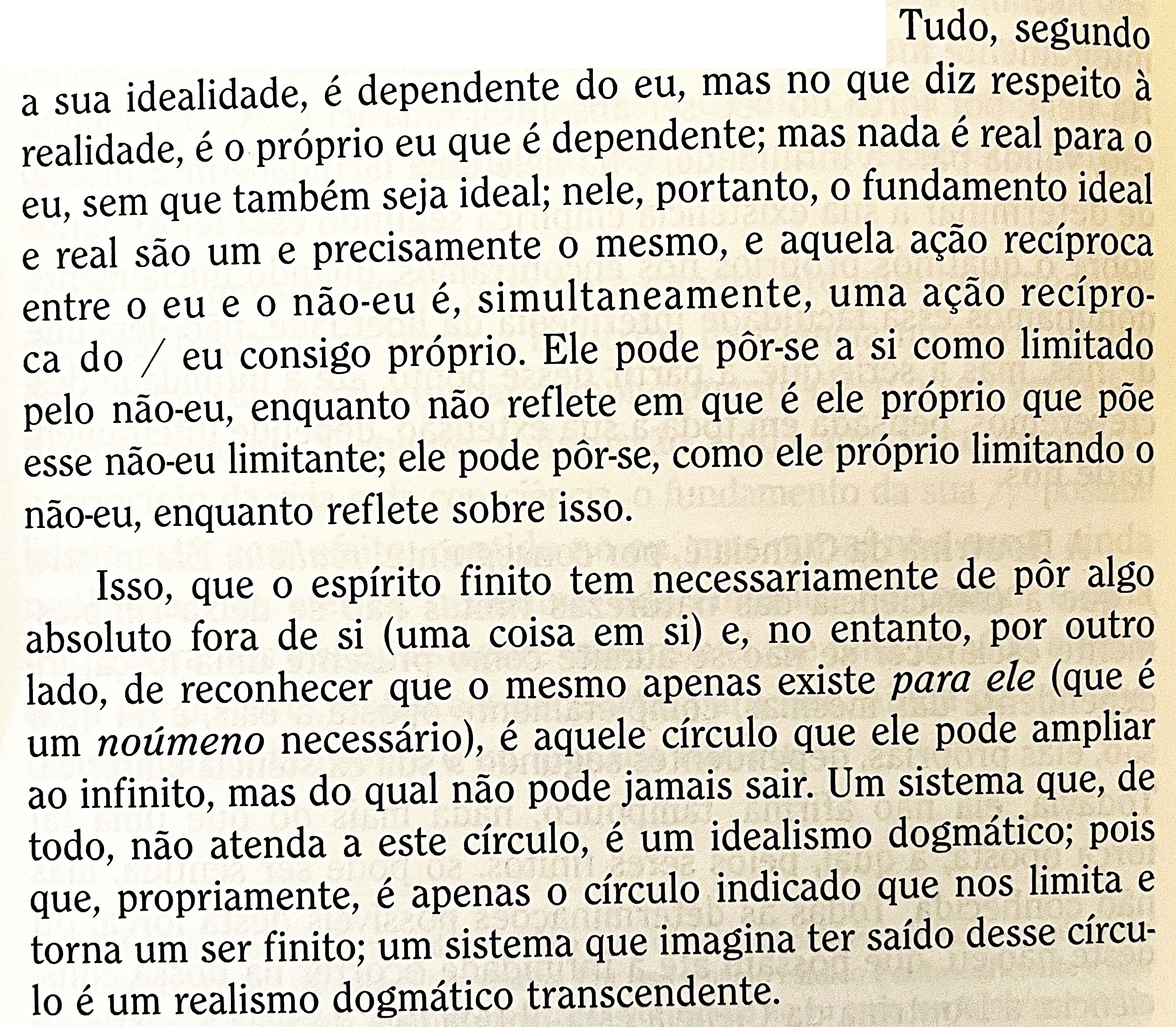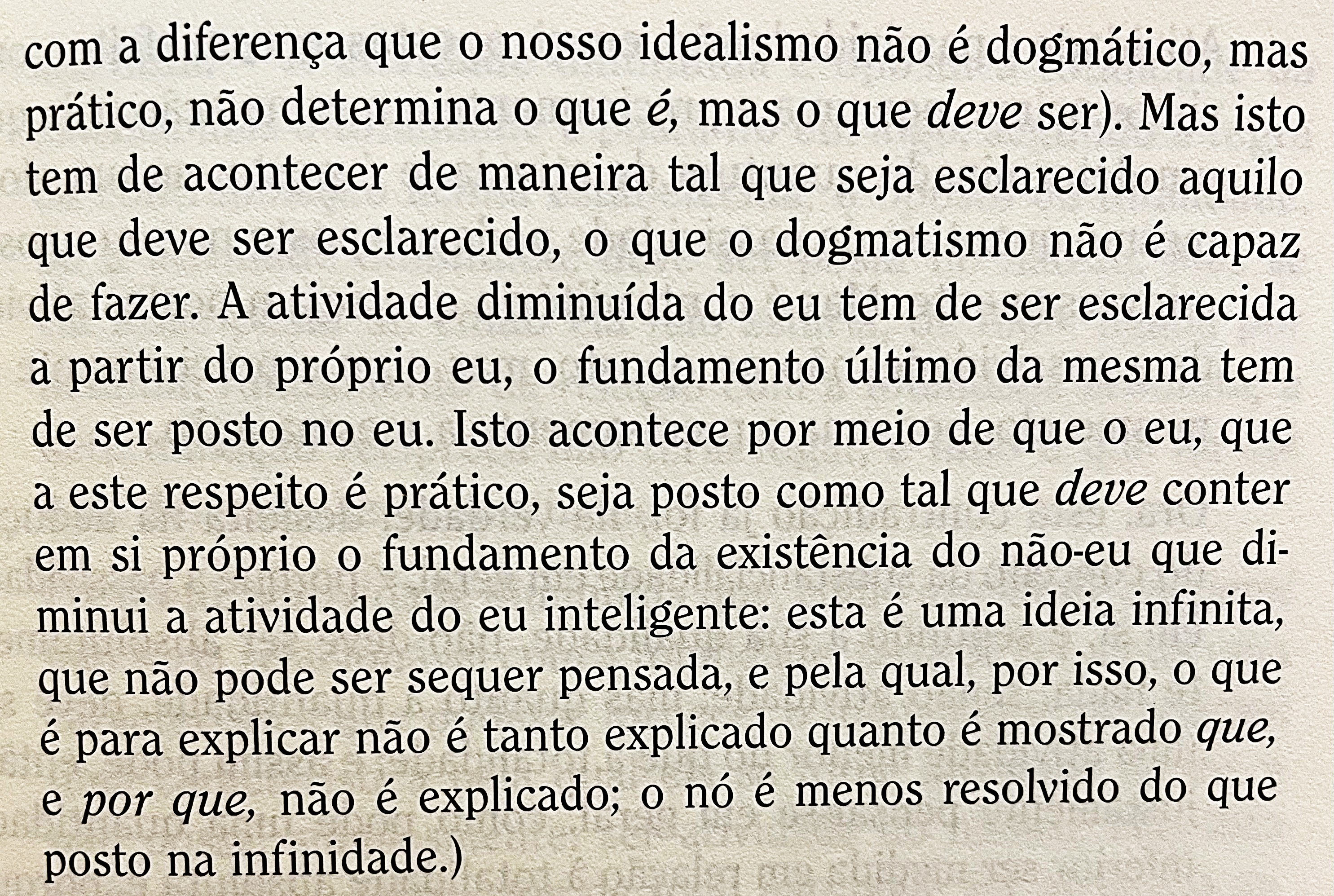 Precisamos entender isso em partes e com cuidado. Primeiro, a respeito da diferença entre o conhecimento sensível e o racional, o que produz a diferença destacada por Hegel é o poder de domínio da razão abstrativa que gera o entendimento. Em face da intuição do Ser através da Percepção, o produto secundário da razão como reflexão do intuído está muito mais ao dispor da nossa Vontade, o que sempre nos traz um tipo de conforto, especialmente para as pessoas com um temperamento mais obcecado com controle e domínio. Isto não quer dizer que a verdade pertence a nós, ou que a realidade intuída na Percepção seja menos verdadeira. Ao contrário, como Hegel assume, a realidade é sempre mais rica do que os produtos da depuração abstrativa. Agora, ela está fora do nosso controle. E isso pode incomodar quem deseja, acima do conhecimento intuitivo, sensível, da bondade, da verdade e da beleza do Ser, o seu domínio. Esse incômodo é fruto do orgulho, então é um problema moral e espiritual, não epistemológico. Uma maneira típica de inversão da prioridade do Ser sobre a Razão humana é a consideração de que não existe conhecimento sensível do tipo intuitivo através da Percepção, mas apenas do tipo abstrato através do entendimento. Essa já é uma interpretação orgulhosa do sentido do conhecimento. Segundo, sobre a participação essencial do sujeito na constituição do objeto, de acordo com as categorias mais básicas do Idealismo nós podemos concordar com Hegel, desde que isso signifique reconhecer somente que a realidade concreta, na sua riqueza percebida, seja produzida instintiva e intuitivamente pelo sujeito, mas nunca de modo mediado pela Razão abstrativa. De outro modo, a criatividade subjetiva seria a criação de uma imagem da verdade, de uma imitação, de uma falsificação da verdade, agradável por ser manipulável, mas falsa justamente por não ser perceptível pelas nossas sensações. Esta seria a diferença entre uma mônada criada movida por Deus na sua Percepção, ou seja, iluminada pelo ato da Mônada Incriada, e uma mônada criada que descobrisse possuir luz própria e a capacidade de gerar sua própria “verdade”. O segundo caso, que parece ser o objetivo da intenção de Hegel, seria o cumprimento da promessa da Serpente no Jardim do Éden. É desnecessário dizer o quanto essa doutrina é gnóstica. A filosofia, portanto, tem sempre o potencial de reconhecer o ato criativo de Deus, ou de querer se desligar dessa concepção e gerar um mito de emancipação da Razão humana. Qual seria, então, de acordo com o propósito divino, a função da Razão para o ser humano? Seria o de dar o testemunho da verdade fundada em Deus. É possível, porém, deturpar e corromper essa função para subsidiar racionalmente uma tese de rompimento com o divino. O que opera a escolha é o próprio arbítrio humano fundado na crença de aceitação de que o Mistério divino é amoroso, ou na crença maliciosa de que o Mistério é indiferente, ou mesmo maligno. Hegel e quem mais seja pode filosofar o quanto queira, jamais ultrapassará o fato dessa potência humana de crer na premissa que baseia a sua escolha. Contra o dogmatismo, o criticismo teria sempre a razão de se reconhecer como imune ao perigo da Escolha. Isso é verdade. Mas jamais pode se imunizar contra o perigo de não assumir a Escolha quando esta é inevitável na interpretação das primeiras premissas de qualquer raciocínio, afinal de contas não é impossível que alguma idéia dogmática seja verdadeira entre outras falsas, e que esta verdade só seja alcançável pela crença pura. Por outro lado, quem considerasse essa possibilidade poderia filosofar a respeito da distinção entre as conveniências das crenças diversas, e talvez alcançar, por exemplo, a Teleologia Metaracional do Sumo Bem. Isto tudo está à disposição da mesma Razão humana que Hegel quer usar para se imunizar contra todos os perigos das crenças. Bem dito, na Dialética hegeliana a falseabilidade da verdade provisória toma sempre a forma de algo como uma crença que precisa ser novamente criticada como uma tese deve receber a oposição de uma antítese. Mas a questão do valor da Escolha é a do encontro da verdadeira calma e tranquilidade que ele está sempre mencionando, que não está na descoberta de um Espírito em nós, mas que nos transcende. Em suma: o Espírito no qual podemos repousar não é o nosso próprio, mas o divino. Essa é a diferença do papel da Escolha entre crenças provisórias dentro de um raciocínio e a produzida sobrenaturalmente pela Fé: num caso crer é apenas uma parte de um processo, é a contraparte do descrer; no outro, crer é libertar-se de seu próprio limite que forçou o filósofo a assumir um pensamento crítico em primeiro lugar.