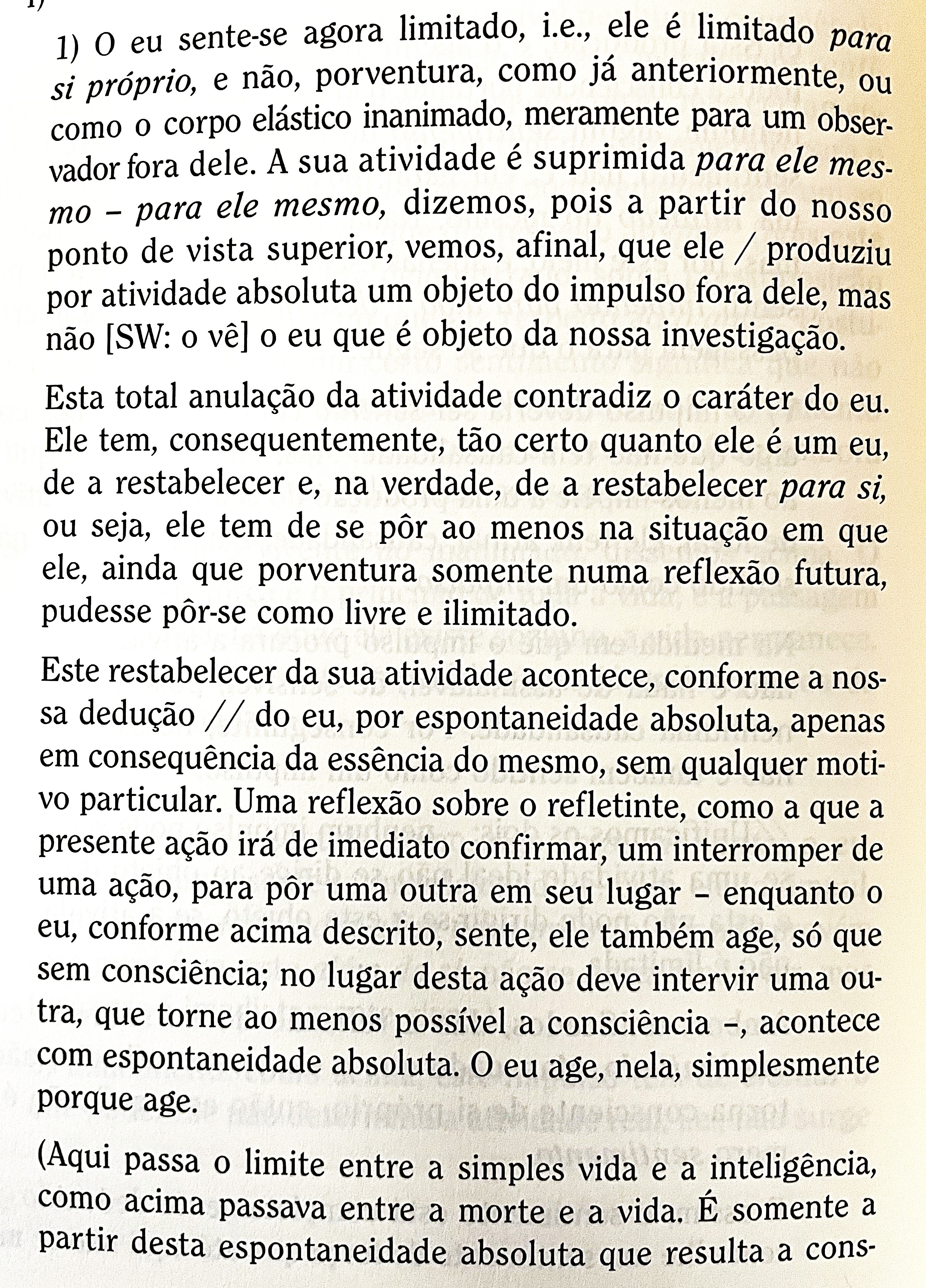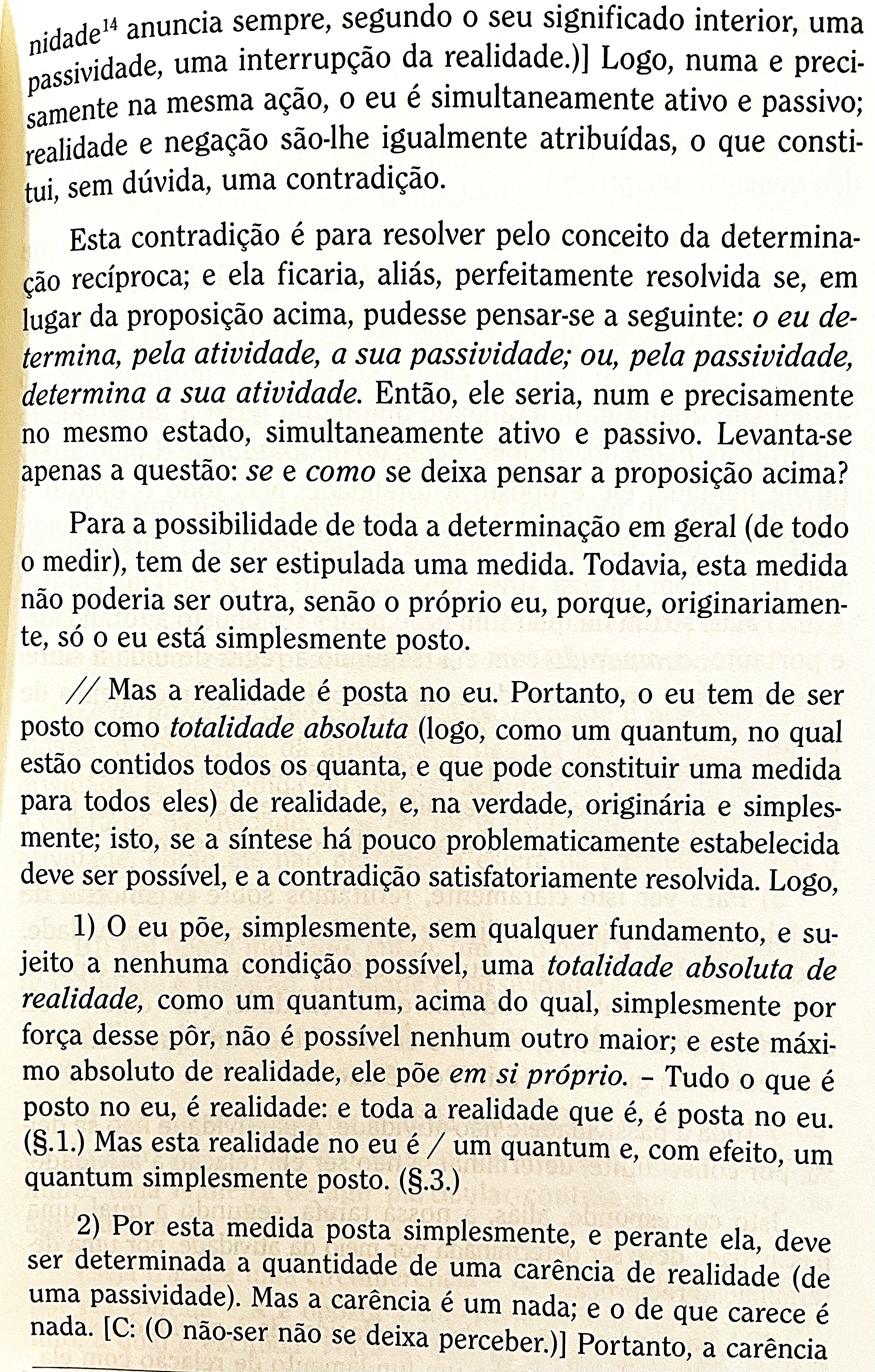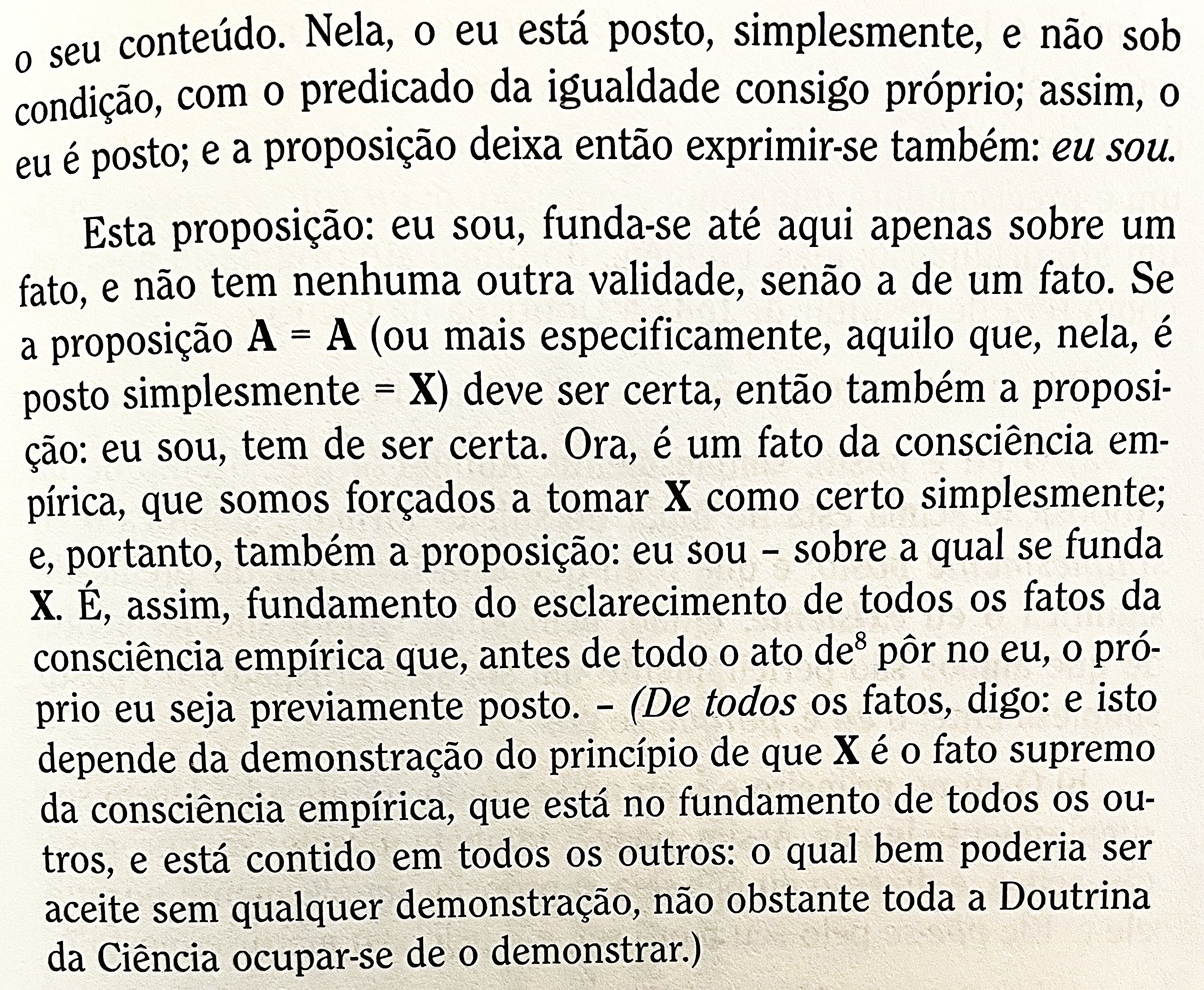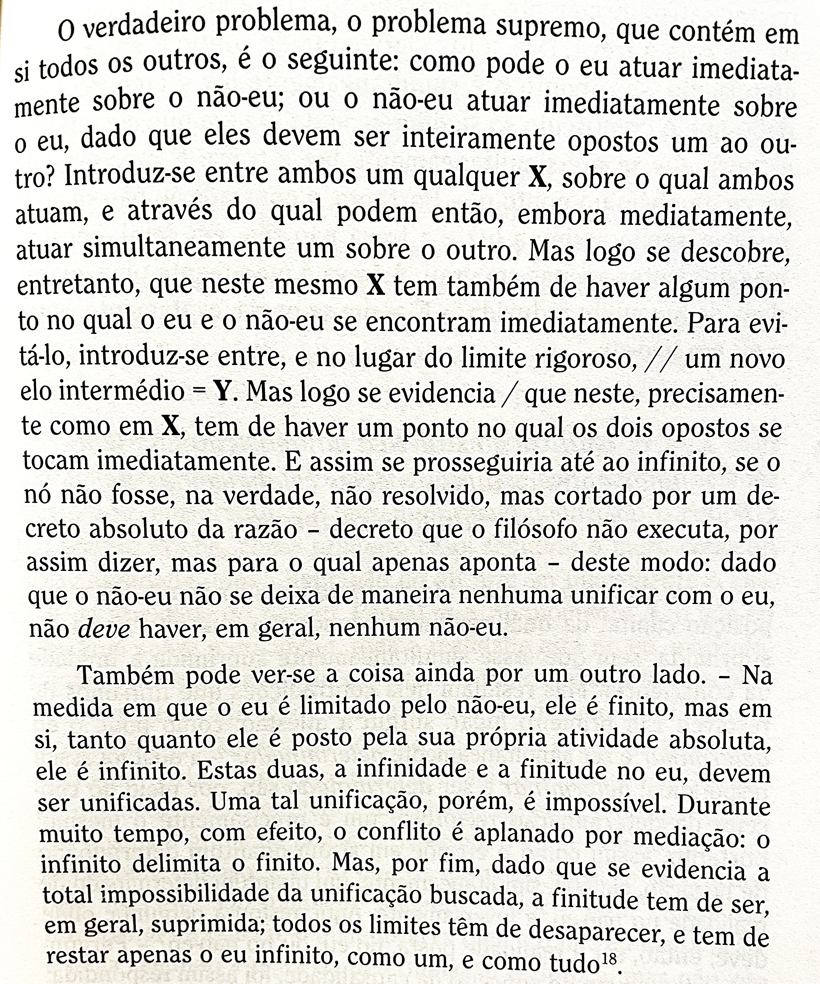 Precisamos entender isso em partes e com cuidado. Primeiro, a respeito da diferença entre o conhecimento sensível e o racional, o que produz a diferença destacada por Hegel é o poder de domínio da razão abstrativa que gera o entendimento. Em face da intuição do Ser através da Percepção, o produto secundário da razão como reflexão do intuído está muito mais ao dispor da nossa Vontade, o que sempre nos traz um tipo de conforto, especialmente para as pessoas com um temperamento mais obcecado com controle e domínio. Isto não quer dizer que a verdade pertence a nós, ou que a realidade intuída na Percepção seja menos verdadeira. Ao contrário, como Hegel assume, a realidade é sempre mais rica do que os produtos da depuração abstrativa. Agora, ela está fora do nosso controle. E isso pode incomodar quem deseja, acima do conhecimento intuitivo, sensível, da bondade, da verdade e da beleza do Ser, o seu domínio. Esse incômodo é fruto do orgulho, então é um problema moral e espiritual, não epistemológico. Uma maneira típica de inversão da prioridade do Ser sobre a Razão humana é a consideração de que não existe conhecimento sensível do tipo intuitivo através da Percepção, mas apenas do tipo abstrato através do entendimento. Essa já é uma interpretação orgulhosa do sentido do conhecimento. Segundo, sobre a participação essencial do sujeito na constituição do objeto, de acordo com as categorias mais básicas do Idealismo nós podemos concordar com Hegel, desde que isso signifique reconhecer somente que a realidade concreta, na sua riqueza percebida, seja produzida instintiva e intuitivamente pelo sujeito, mas nunca de modo mediado pela Razão abstrativa. De outro modo, a criatividade subjetiva seria a criação de uma imagem da verdade, de uma imitação, de uma falsificação da verdade, agradável por ser manipulável, mas falsa justamente por não ser perceptível pelas nossas sensações. Esta seria a diferença entre uma mônada criada movida por Deus na sua Percepção, ou seja, iluminada pelo ato da Mônada Incriada, e uma mônada criada que descobrisse possuir luz própria e a capacidade de gerar sua própria “verdade”. O segundo caso, que parece ser o objetivo da intenção de Hegel, seria o cumprimento da promessa da Serpente no Jardim do Éden. É desnecessário dizer o quanto essa doutrina é gnóstica. A filosofia, portanto, tem sempre o potencial de reconhecer o ato criativo de Deus, ou de querer se desligar dessa concepção e gerar um mito de emancipação da Razão humana. Qual seria, então, de acordo com o propósito divino, a função da Razão para o ser humano? Seria o de dar o testemunho da verdade fundada em Deus. É possível, porém, deturpar e corromper essa função para subsidiar racionalmente uma tese de rompimento com o divino. O que opera a escolha é o próprio arbítrio humano fundado na crença de aceitação de que o Mistério divino é amoroso, ou na crença maliciosa de que o Mistério é indiferente, ou mesmo maligno. Hegel e quem mais seja pode filosofar o quanto queira, jamais ultrapassará o fato dessa potência humana de crer na premissa que baseia a sua escolha. Contra o dogmatismo, o criticismo teria sempre a razão de se reconhecer como imune ao perigo da Escolha. Isso é verdade. Mas jamais pode se imunizar contra o perigo de não assumir a Escolha quando esta é inevitável na interpretação das primeiras premissas de qualquer raciocínio, afinal de contas não é impossível que alguma idéia dogmática seja verdadeira entre outras falsas, e que esta verdade só seja alcançável pela crença pura. Por outro lado, quem considerasse essa possibilidade poderia filosofar a respeito da distinção entre as conveniências das crenças diversas, e talvez alcançar, por exemplo, a Teleologia Metaracional do Sumo Bem. Isto tudo está à disposição da mesma Razão humana que Hegel quer usar para se imunizar contra todos os perigos das crenças. Bem dito, na Dialética hegeliana a falseabilidade da verdade provisória toma sempre a forma de algo como uma crença que precisa ser novamente criticada como uma tese deve receber a oposição de uma antítese. Mas a questão do valor da Escolha é a do encontro da verdadeira calma e tranquilidade que ele está sempre mencionando, que não está na descoberta de um Espírito em nós, mas que nos transcende. Em suma: o Espírito no qual podemos repousar não é o nosso próprio, mas o divino. Essa é a diferença do papel da Escolha entre crenças provisórias dentro de um raciocínio e a produzida sobrenaturalmente pela Fé: num caso crer é apenas uma parte de um processo, é a contraparte do descrer; no outro, crer é libertar-se de seu próprio limite que forçou o filósofo a assumir um pensamento crítico em primeiro lugar.