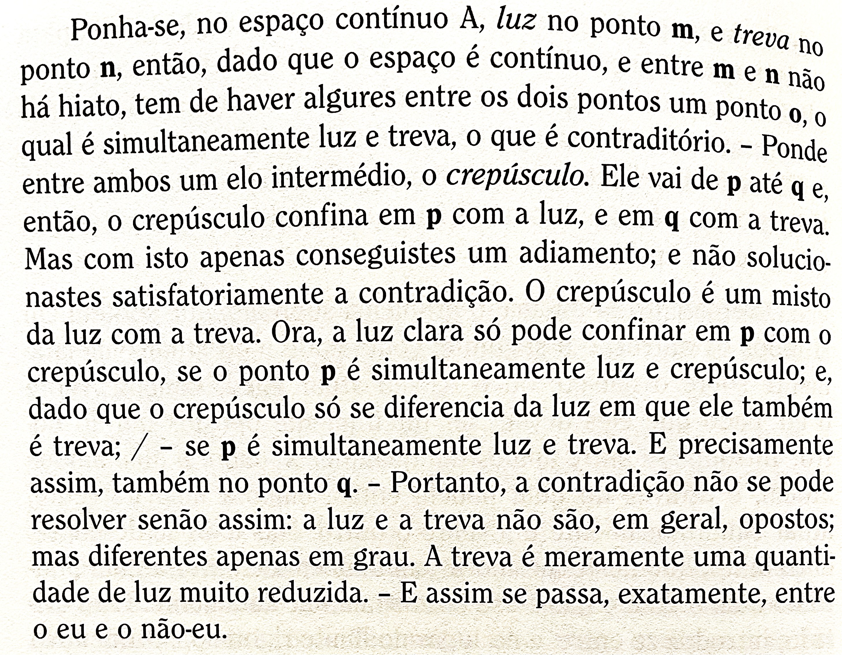 Para demonstrar que o nosso filósofo não está imune ele mesmo da impregnação, por efeito colateral na cultura do testemunho do espírito do Gnosticismo, verifique-se esta passagem, por exemplo: