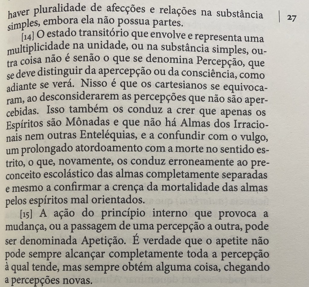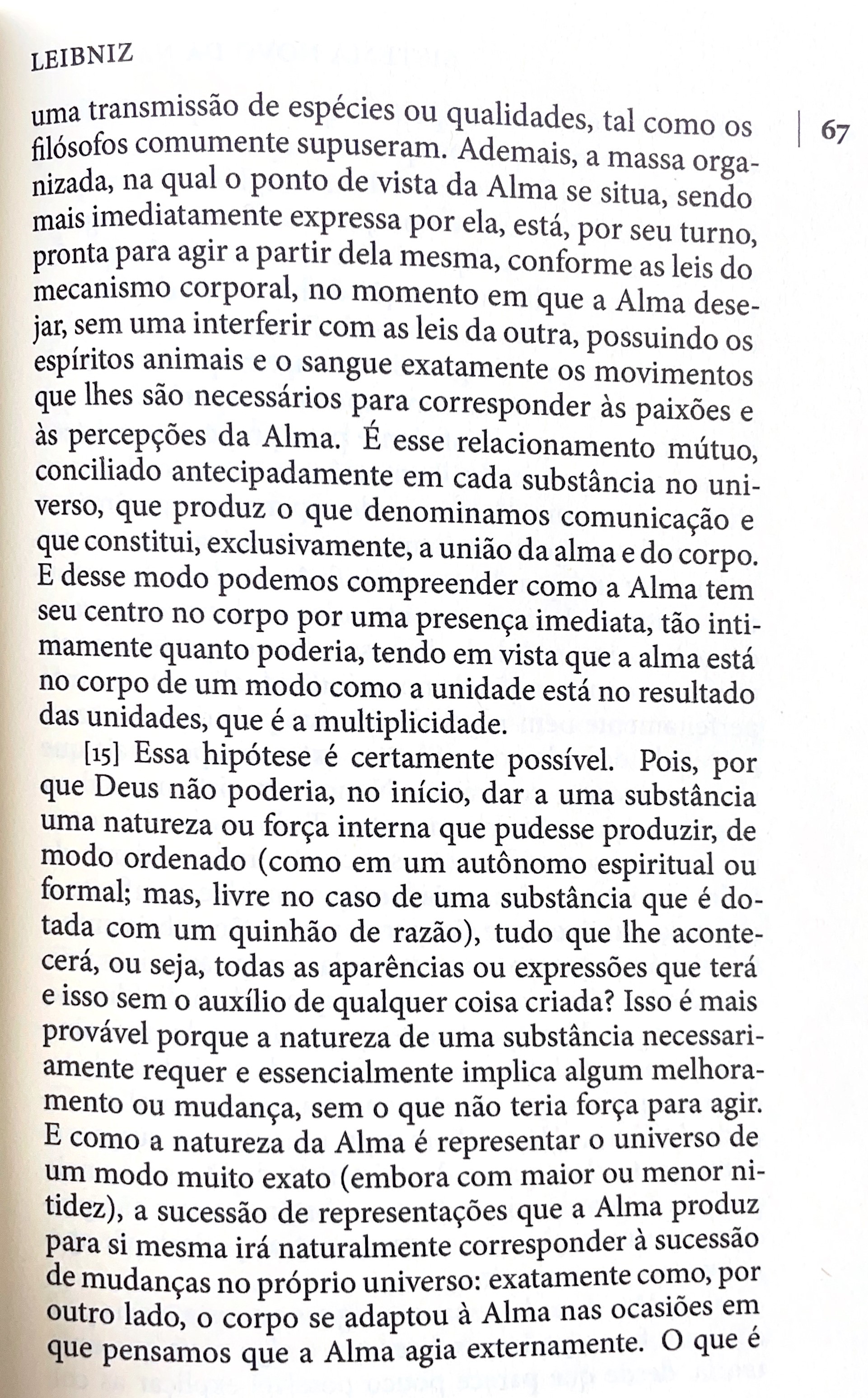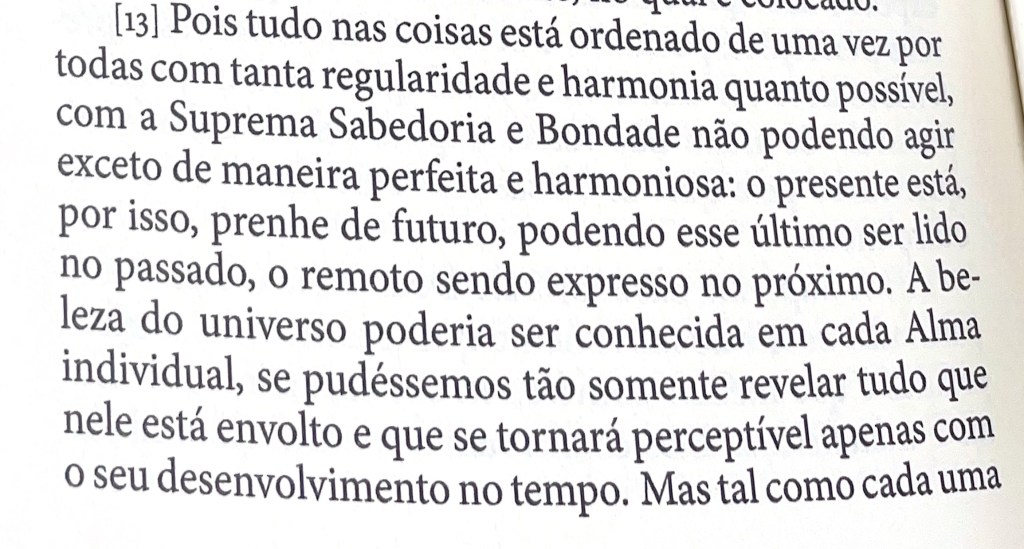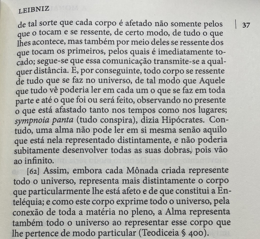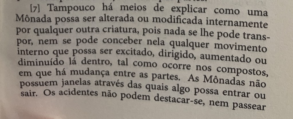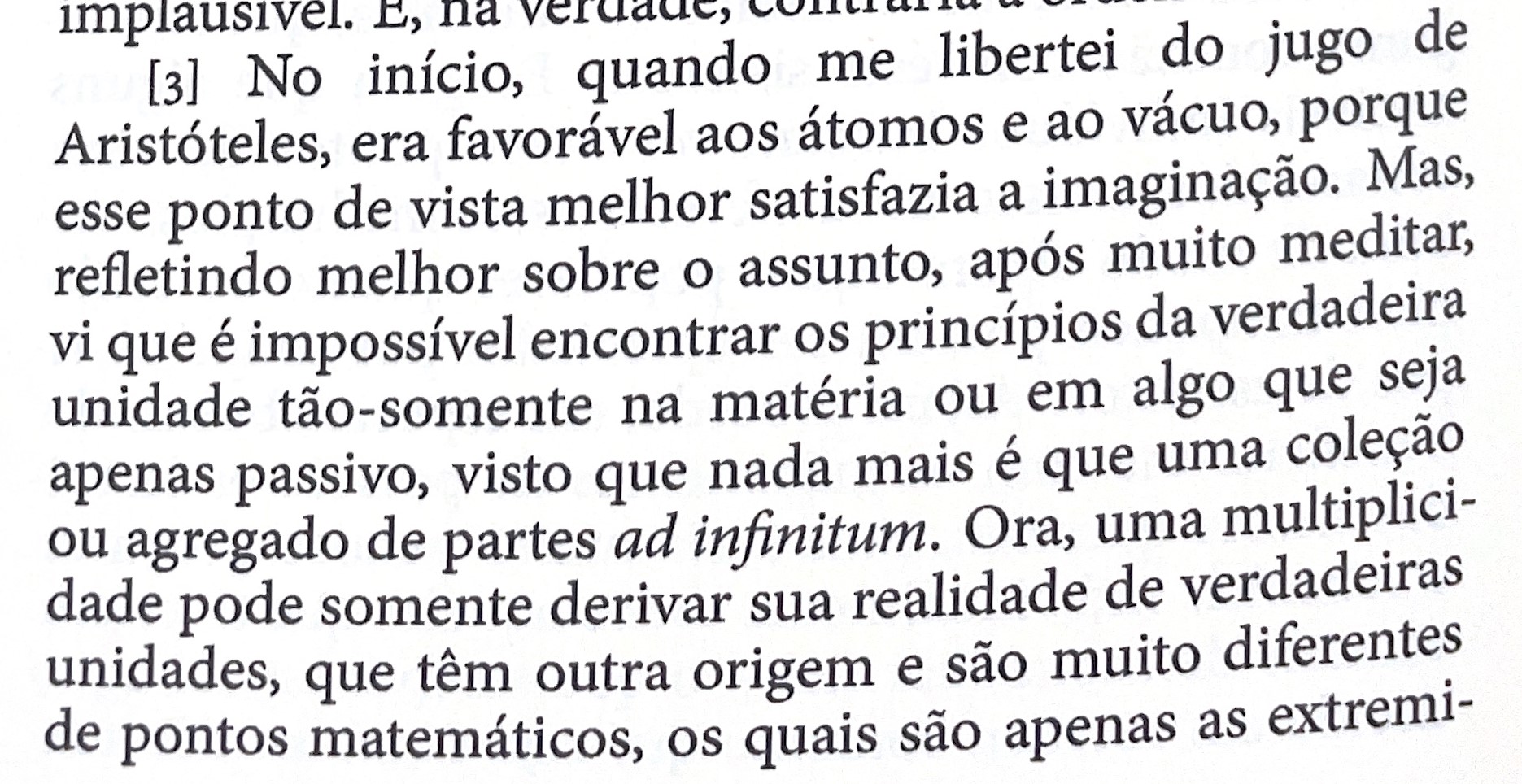 Vejamos algumas passagens desta obra, que aliás é uma coleção de textos, começando por “A Monadologia, ou princípios da filosofia“: