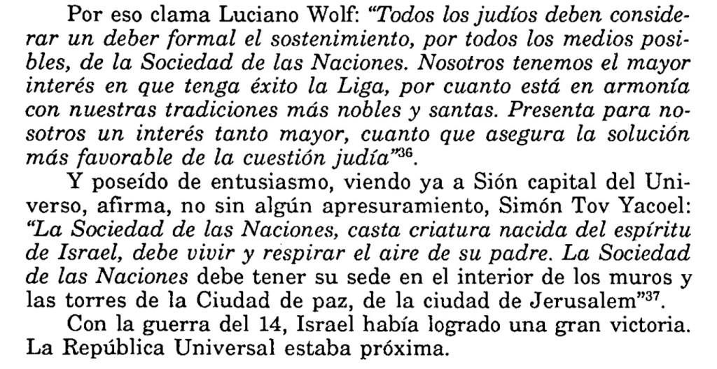 Aqui temos um dos elementos mais importantes no entendimento da geopolítica moderna desde o ponto de vista do milenarismo messiânico, que é a total concordância e colaboração entre os conceitos de Globalismo e Sionismo: a restauração do mundo (tikkun olam) requer simultaneamente a dissolução de todas as identidades nacionais ao redor da legitimidade da nação dos sacerdotes que realização o Reino de Deus na Terra, a nação de Israel, cuja capital Jerusalém se tornará o centro não só do mundo, mas até mesmo do universo.