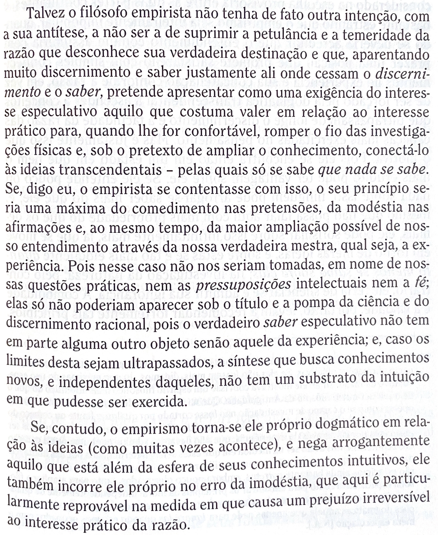 O empirista, enquanto cético, retoma a antiga labuta socrática de determinar limites à especulação da Razão natural, isto é, a este poder ilimitado que a psique tem de produzir a imagem da verdade.