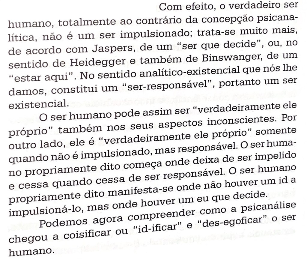 Fiquei satisfeitíssimo que um médico tenha operado essa justa correção na visão de mundo do Psiquismo. O ser humano completamente manipulado pelos impulsos que determinam o seu ser, interior e exteriormente, nunca existiu e nunca existirá. Ao contrário, ser humano significa ter liberdade interior diante de qualquer circunstância, ainda que sem o poder de modificá-la exteriormente, mas sempre podendo assentir e rejeitar, desejar e repelir, etc.