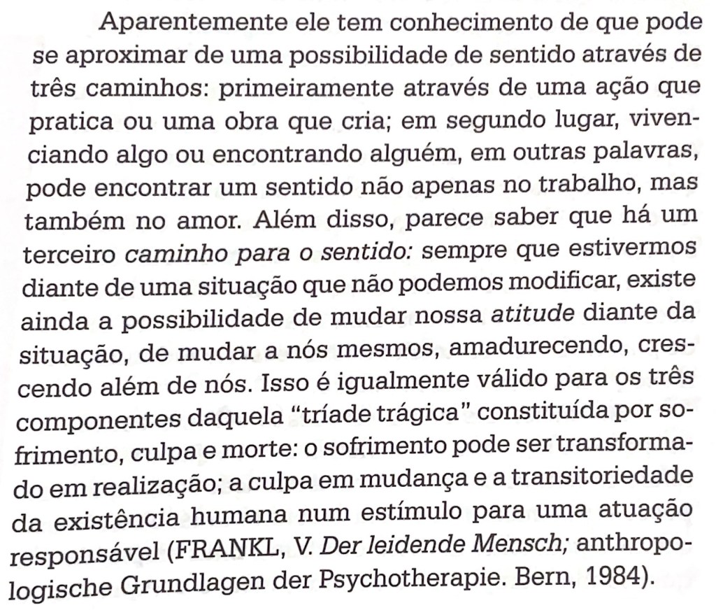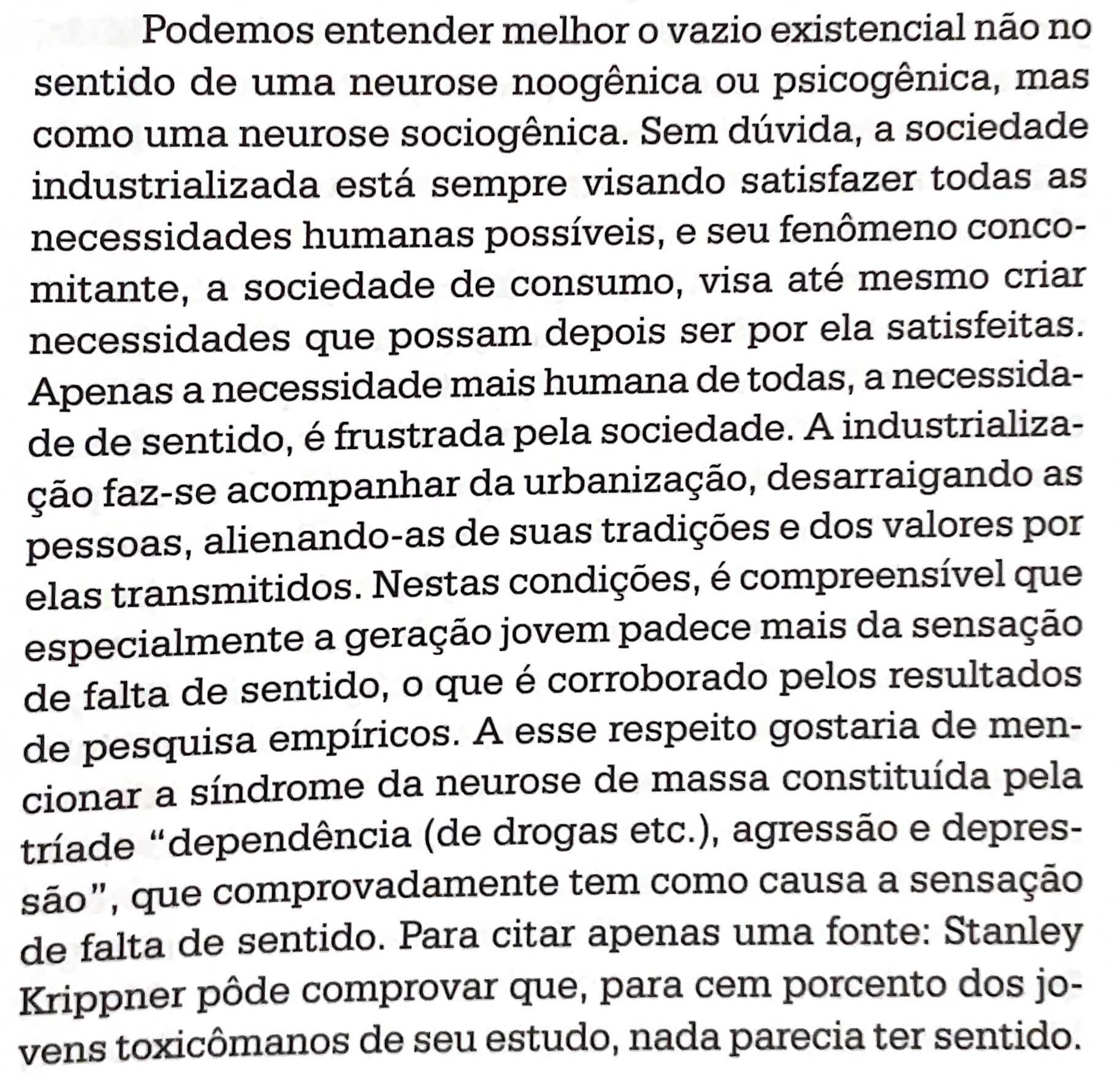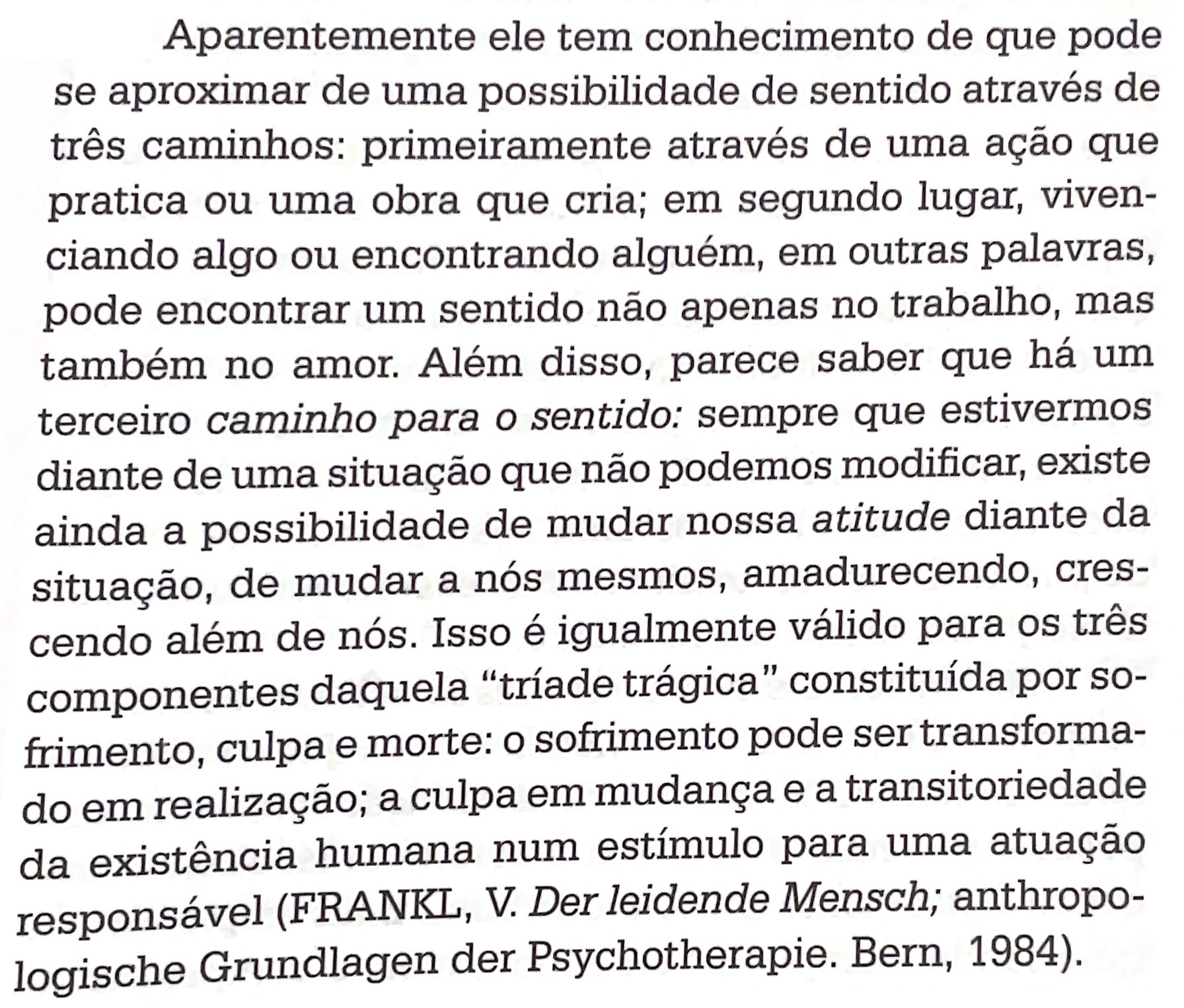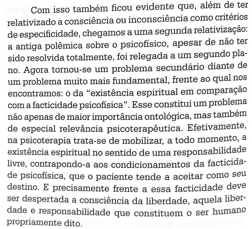 Ainda que limitado pelo âmbito da sua especialidade, isto é, pelo ângulo de um médico, o Dr. Frankl consegue pressionar os limites do Psiquismo humano para reconhecer a razão de ser do que nos transcende, mais ou menos como um kantiano. E tem um sucesso louvável no seu empreendimento.