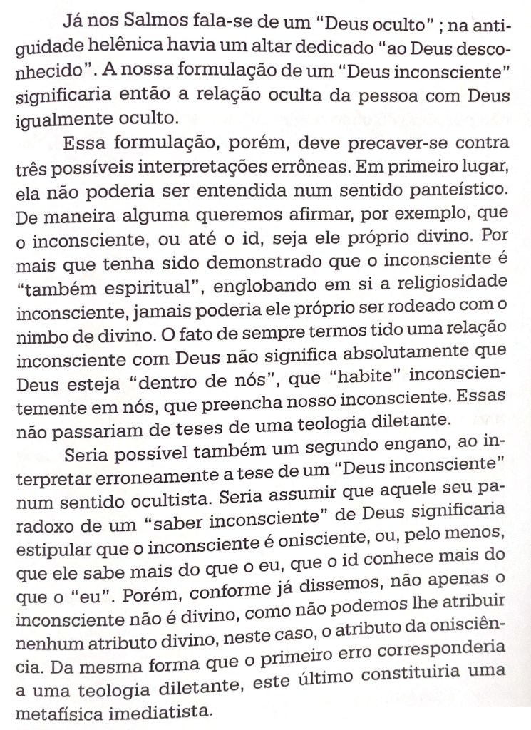 Talvez a saída seja apenas mística, ou teológica, no amparo do conceito de Mistério. Mas este, obviamente, não pode entrar em linha de conta de uma psicologia.