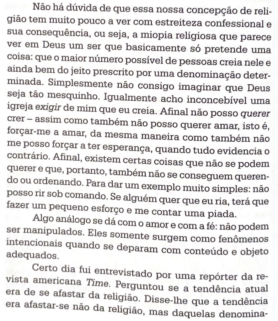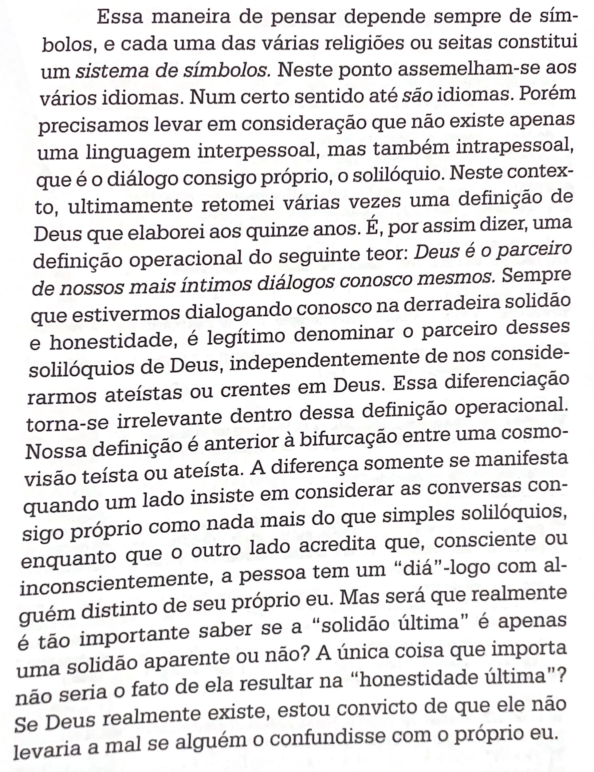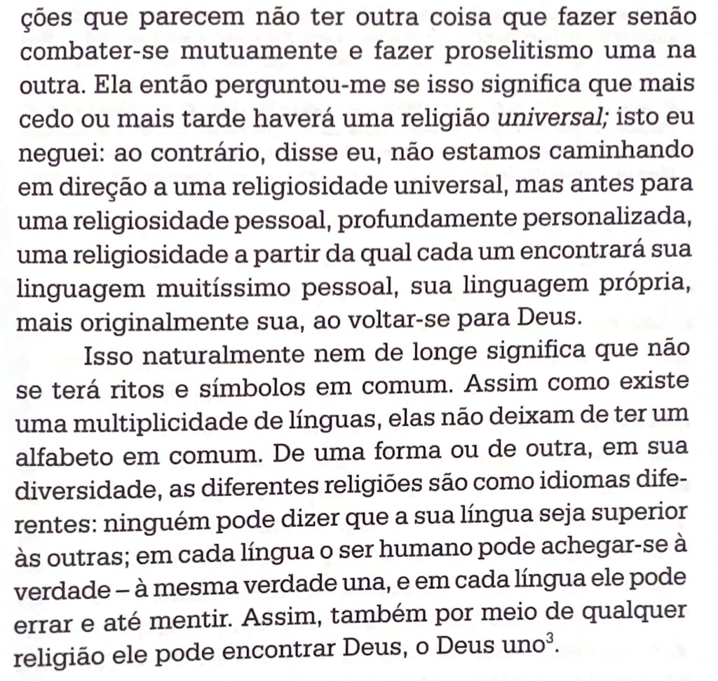 Confesso que senti alívio, depois que o autor usou tantas vezes a idéia de “religião” na sua obra, ao saber que ele não fez a confusão que o uso do termo poderia ter sugerido, entre o que é a liberdade interior de viver diante do Deus verdadeiro, e as formas exteriores de expressão dessa realidade individual sob símbolos coletivos.