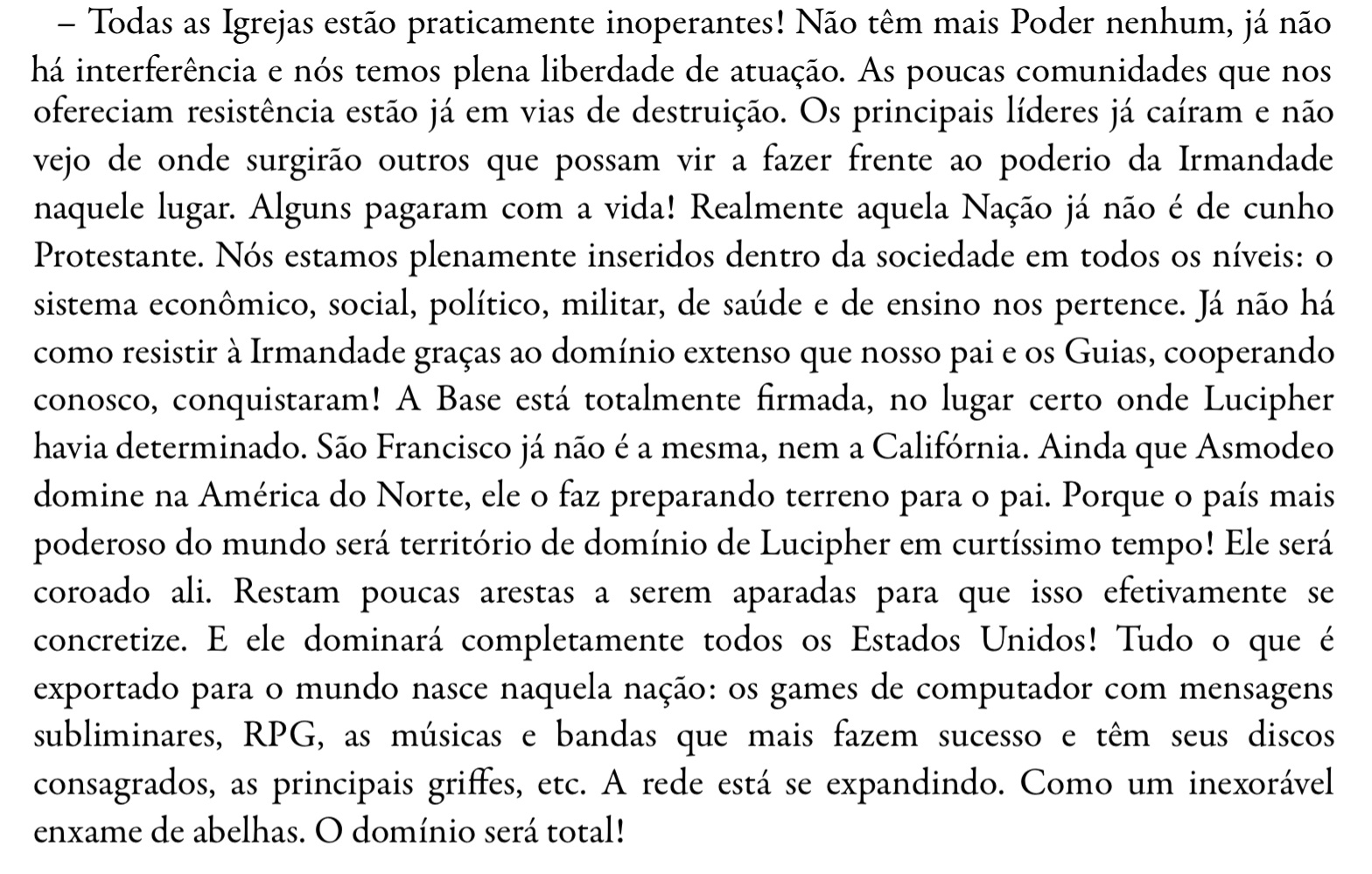 Embora a evolução do processo histórico nos leve necessariamente para mais perto do governo do Anticristo, como cúmulo do domínio de Lúcifer sobre este mundo, isto apenas implica numa manifestação mais clara de uma realidade que já é atual. Jesus mesmo disse que seu Reino não é deste mundo. As esferas de influência e domínio estão bem claras. E sendo assim, o testemunho desses ativistas e militantes satanistas só faz sentido no muito pequeno e mesquinho contexto das suas breves vidas de vaidade e vazio.