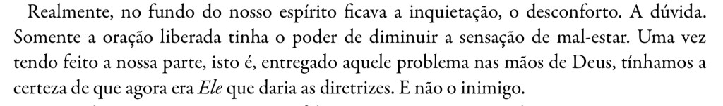 Essas considerações a respeito da interferência nas coisas do mundo, e pior ainda, nas consecuções das diretrizes do inimigo, tudo isso é uma perda de tempo derivada do engano da Idolatria. Se vivemos na Presença do Senhor, imediatamente dispensamos todas essas confusões e dispersões da nossa alma, e nos concentramos na única coisa que interessa: a satisfação de viver na confiança amorosa na bondade do nosso Pai.