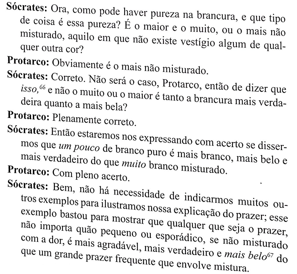 Mais adiante Platão fará uma aproximação mais exata no seu critério de distinção do que é um prazer legítimo, verdadeiro ou bom: