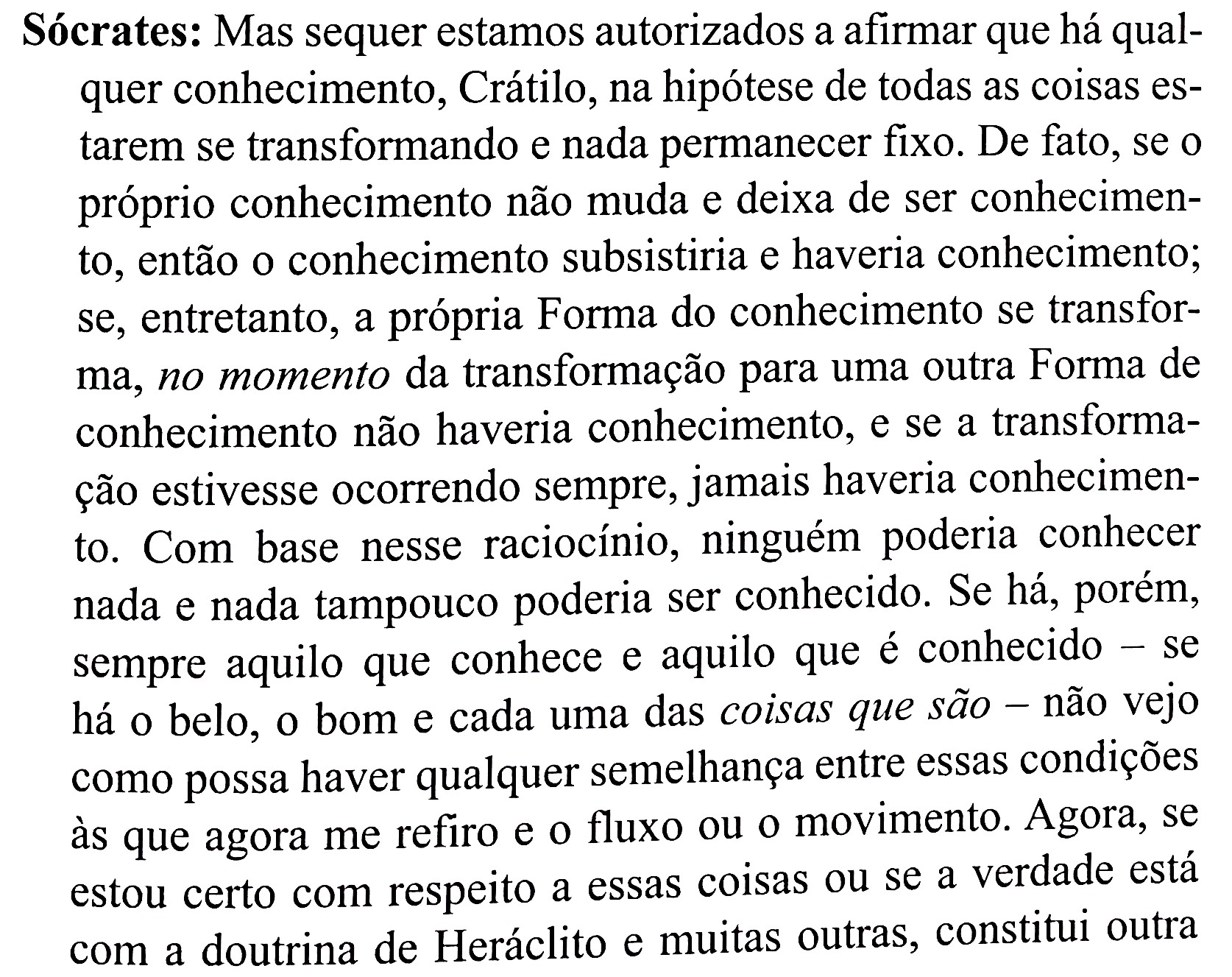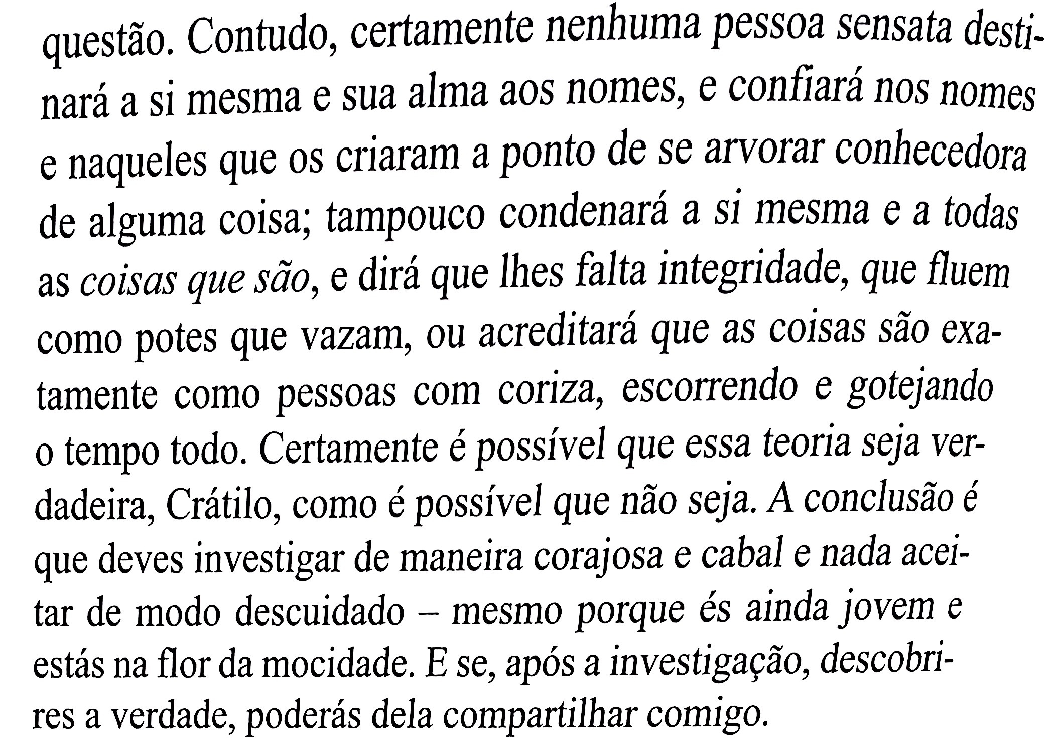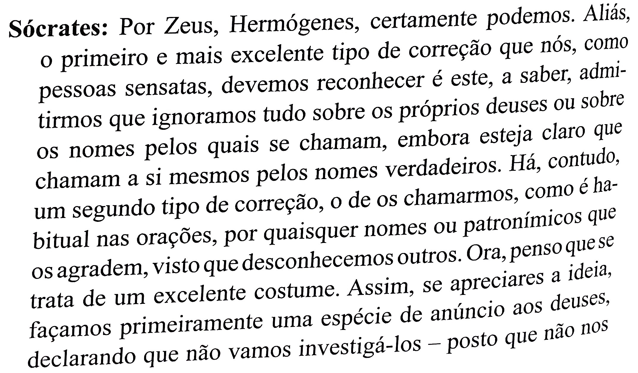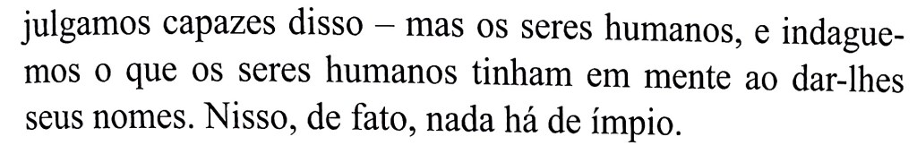 Isso nos basta, no entanto, como correção da Pretensão. É uma virtude, ou talvez até a maior, do idealismo: a perfeição é possível, mas ela não está aqui e agora. Os nomes corretos, verdadeiros, são em si possíveis, graças a Deus, mas não sob qualquer condição, e especialmente não ao dispor da vontade humana.