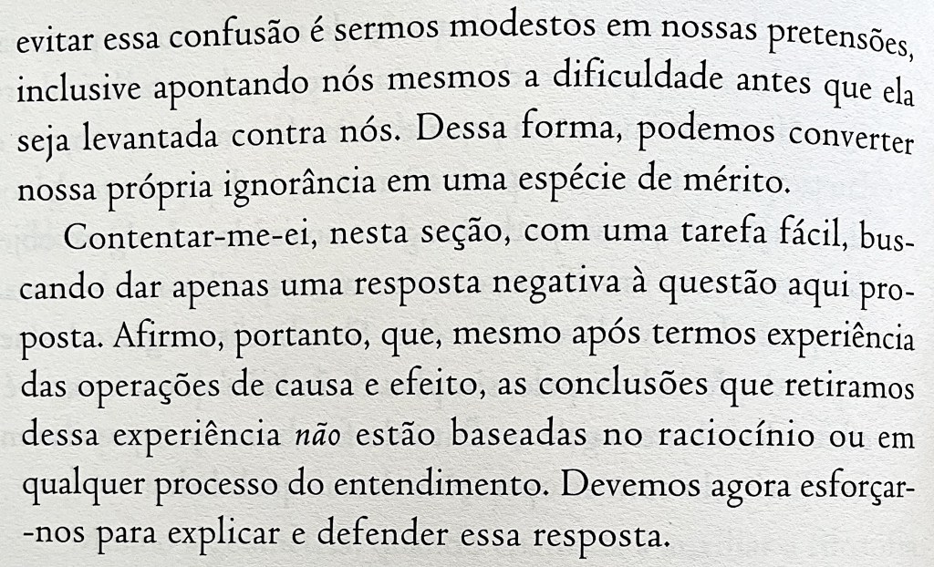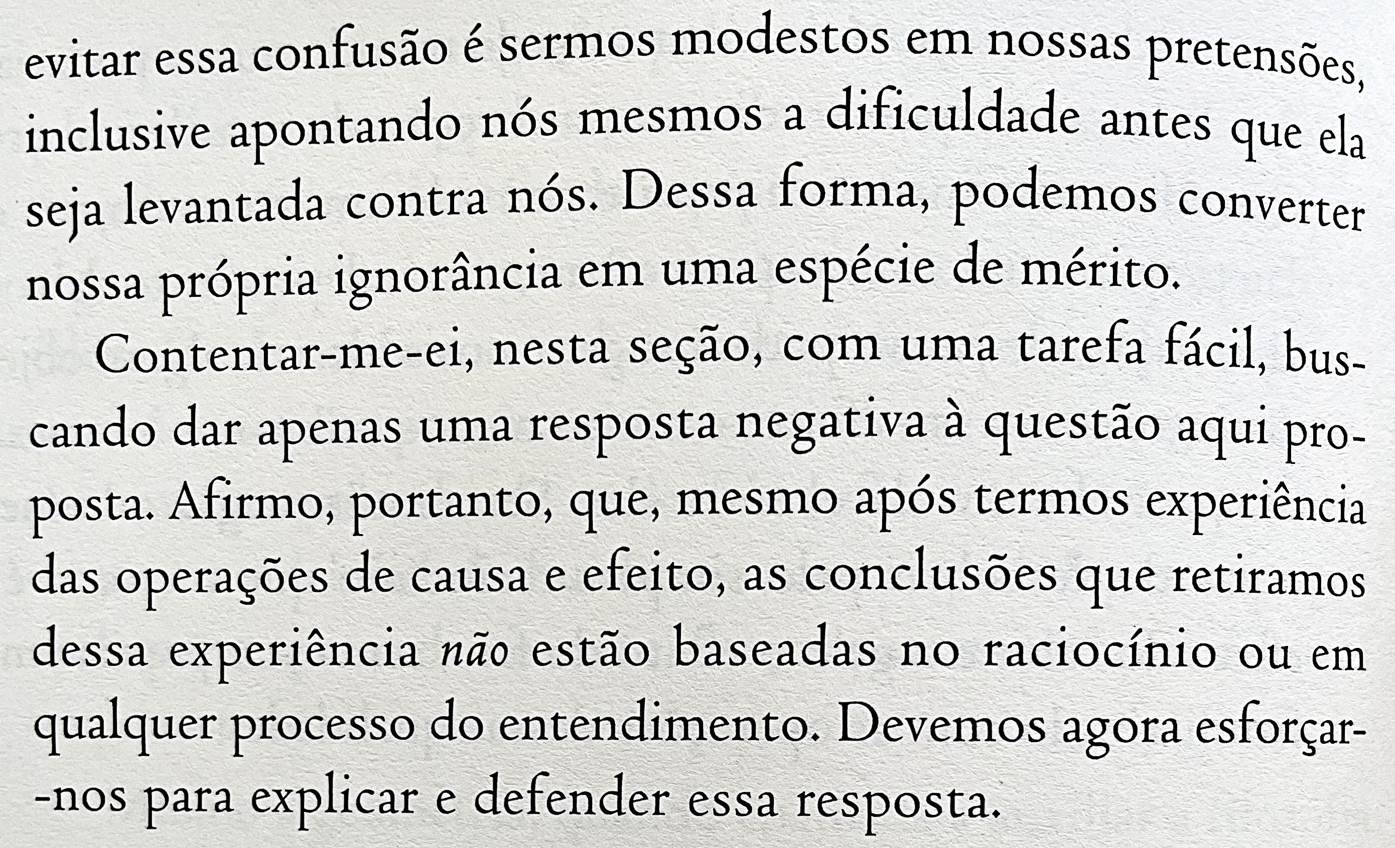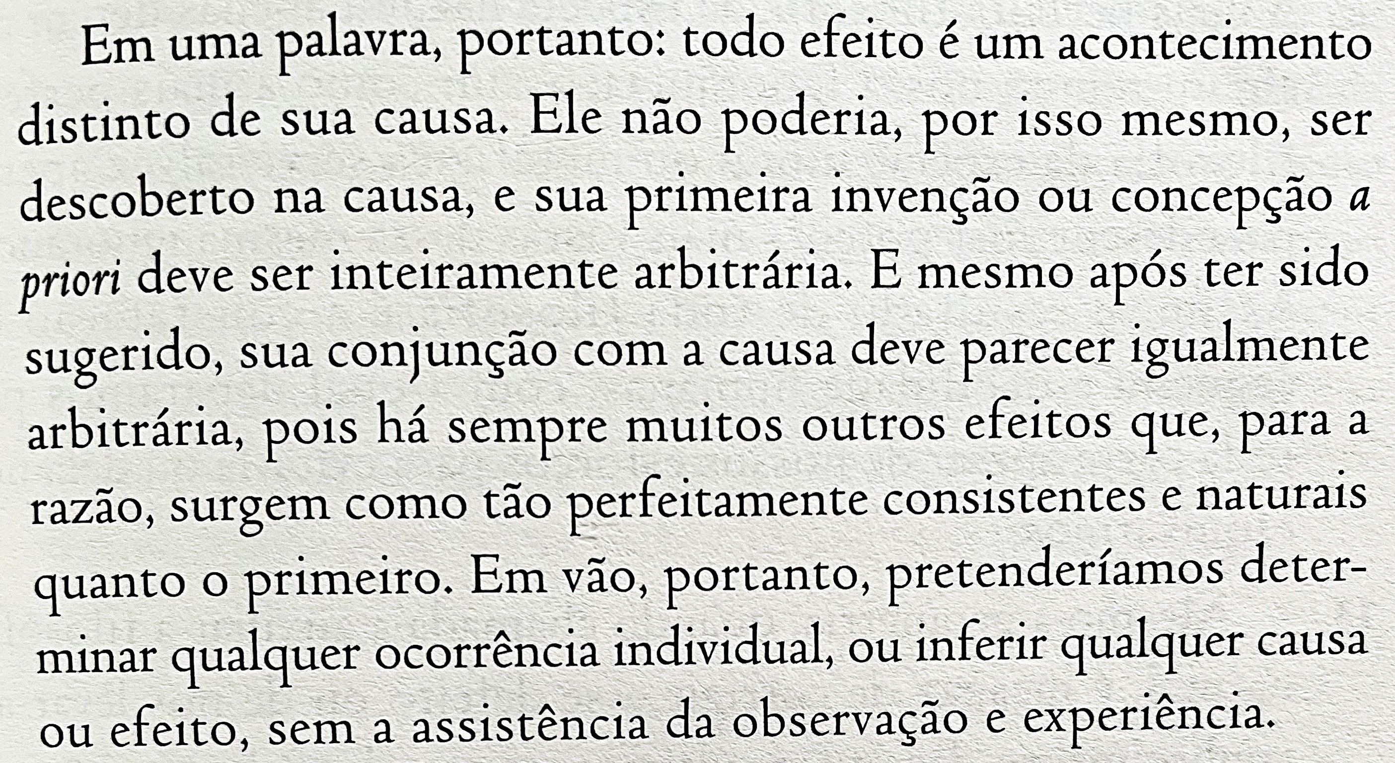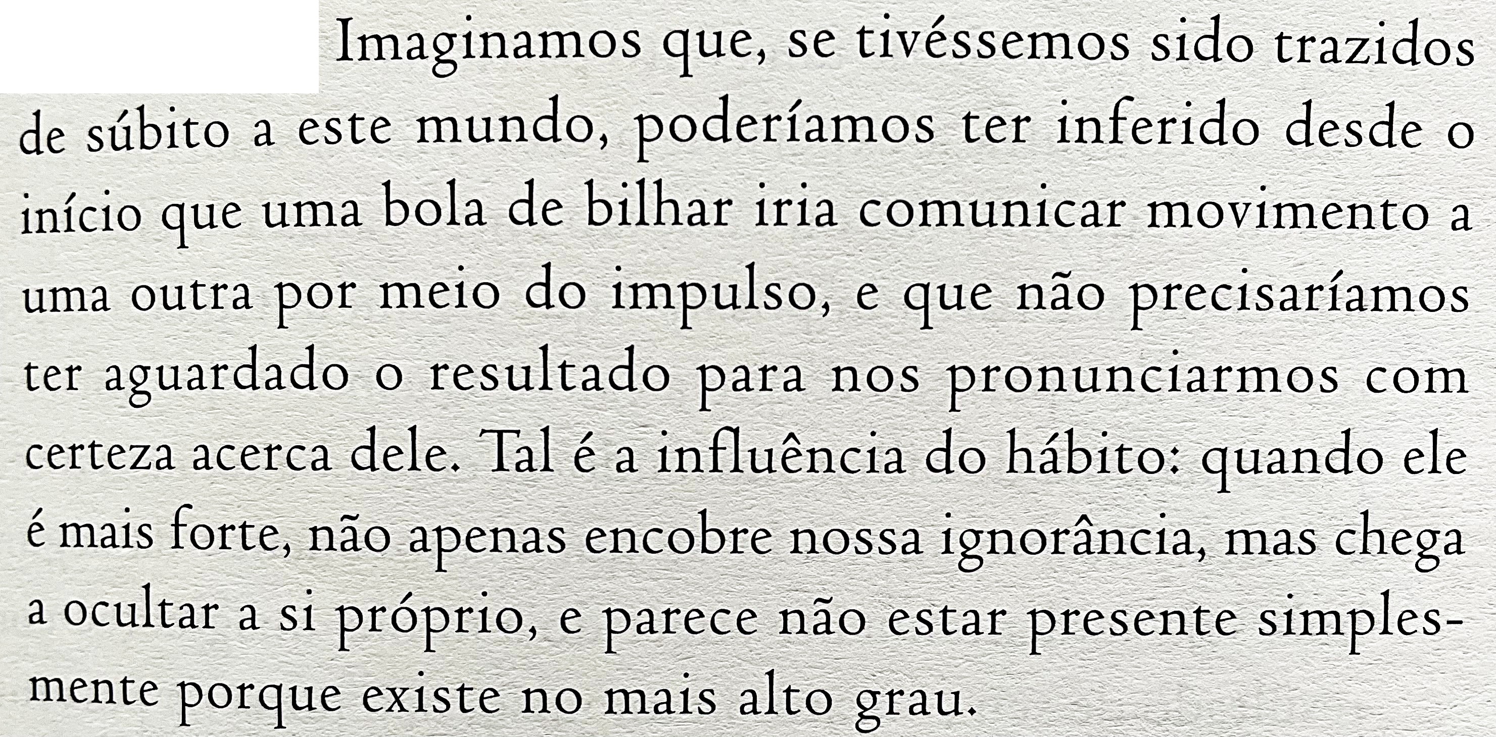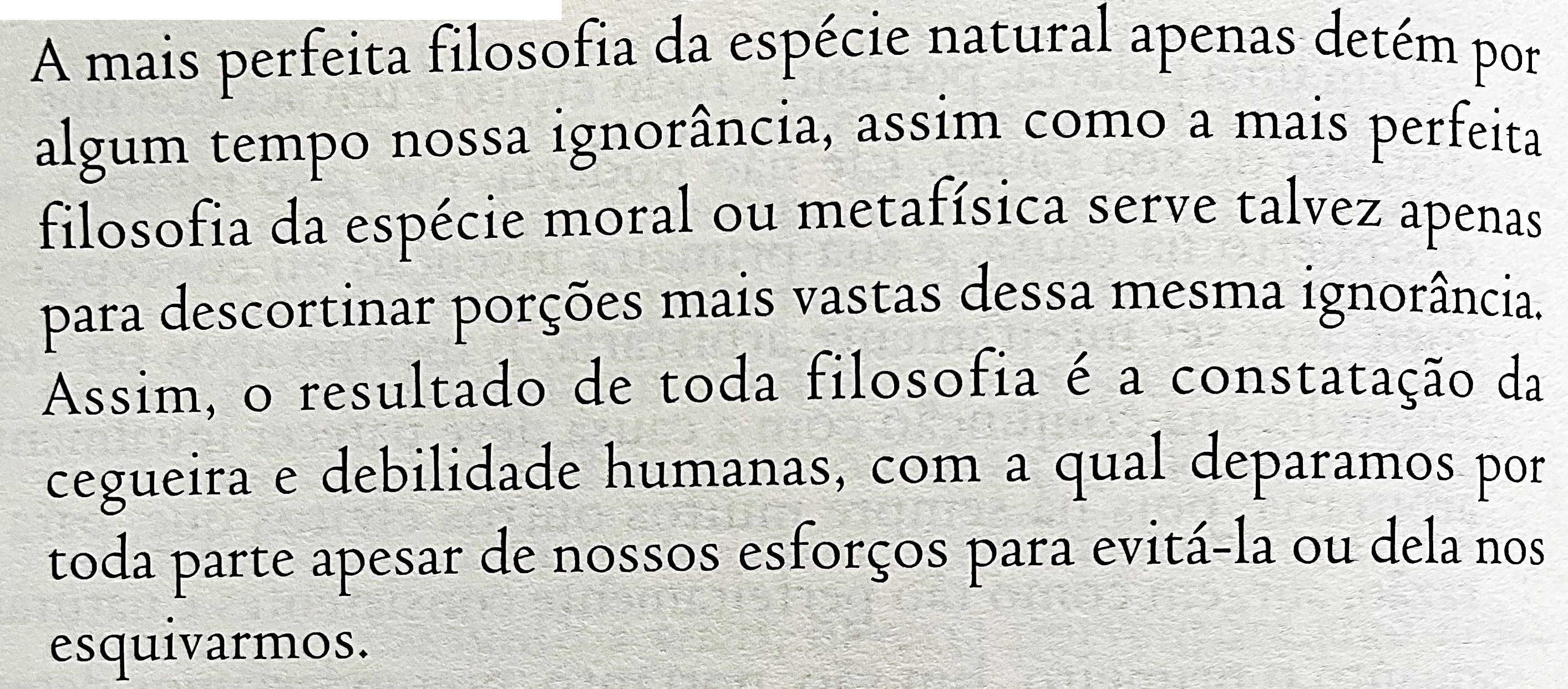 Poderão alegar que Hume era limitado pelas investigações da filosofia natural de sua época, e que isso lhe impedia de conceber os avanços possíveis que só seriam alcançados no futuro. Considerem, por exemplo, esta passagem: